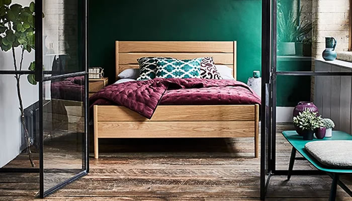 Ercol Rimini King Size Bedstead The ercol Rimini kingsize contemporary bed is constructed in smooth pale oak, featuring a understated chamfered planked headboard.