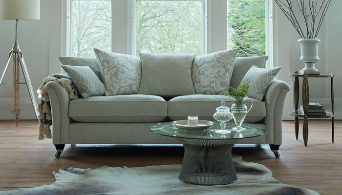 Parker Knoll Devonshire Large 2 Seater Sofa with 4 Pillows 2 Scatters The Parker Knoll Devonshire large 2 Seater Sofa has 4 back pillows and 2 scatter cushions with sprung seats and deep luxury cushions available in a large selection of luxury fabrics.