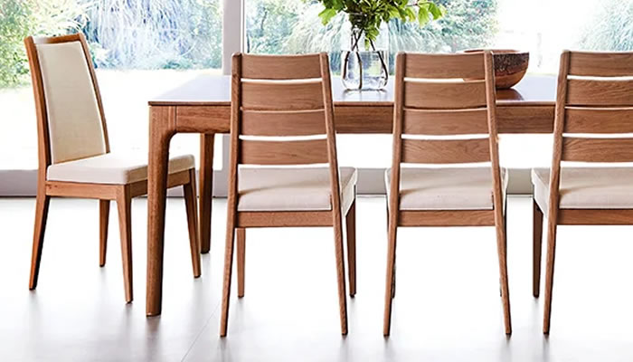 Ercol Romana Dining Chair This ercol Romana Dining Chair with ladder back design is constructed using solid oak and provides an upright and supportive sit. Finished in clear matt lacquer and available in a choice of fabrics and leathers from the ercol Dining Collection of fabrics and leathers.