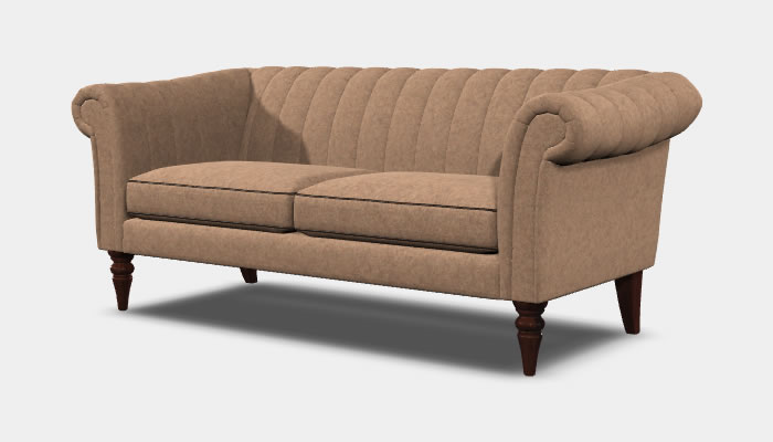 Wood Bros Rushden Medium Sofa The Wood Bros Rushden three seater medium sofa features a low back with striking channels and turned legs. Available in an extensive range of beautiful fabrics, optional soft leather custom piping trim and legs in a selection of wood finishes.