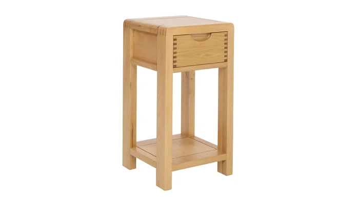 Ercol Bosco Compact Side Table This ercol Bosco compact bedside table completes the bedroom collection, featuring curved finger joint on the top corners and curved recessed drawer.