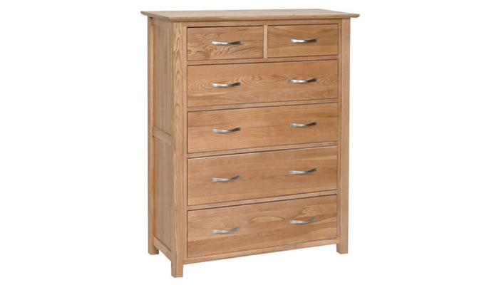 This 2 over 4 drawer chest is perfect for those looking for extra drawer space, whilst keeping a clean and stylish look. The contemporary New York Collection is sustainably sourced and uses traditional construction methods such as dovetailed drawers, tongue and groove backs and bases and brushed steel effect metal handles, finished in a protective light natural lacquer.