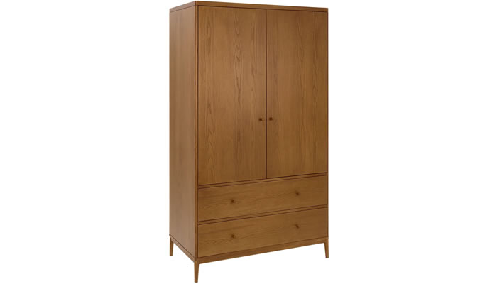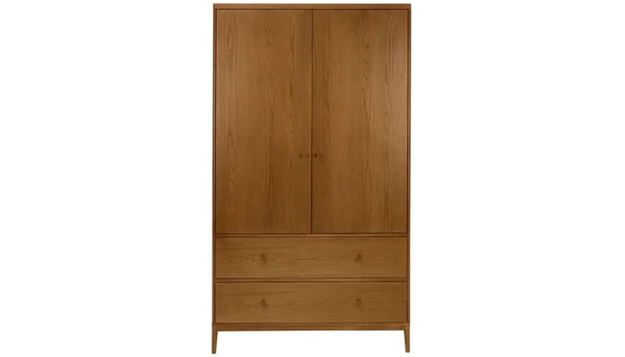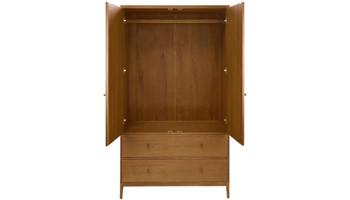 The ercol Salina 2 door wardrobe offers substantial storage space with a sturdy wooden hanging rail. Constructed from solid ash, ash veneers and finished in vintage lacquer.