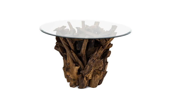 Wild Root Round Coffee Table The Wild Root round coffee table, a standout from our Signature Collection, is expertly handcrafted from teak roots and tempered glass tops. Each piece is distinct, filled with character, and has its own story to share. This collection of timeless furniture is built to last for generations.