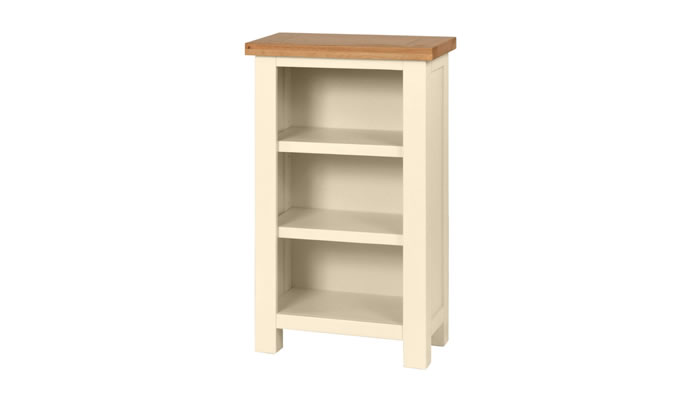 Digbeth Painted Small Bookcase This small bookcase is ideal for small spaces where you need some display space. Stylish and clean design with 2 adjustable shelves. Clean straight lines with stylish panels are crafted from white oak, pine and MDF. Available in Ivory, White and Moon Grey.