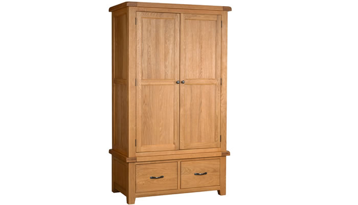 The Signature Collection Southam Gents Wardrobe With 2 Drawers is made from white oak with softened corners, dovetailed drawers and supplied with a rustic pull handles and round metal knobs.