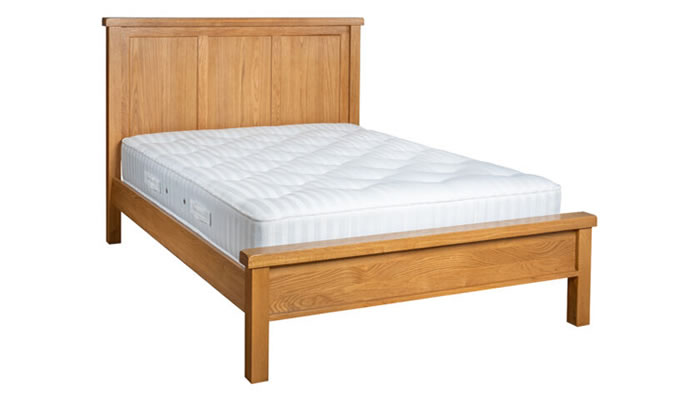 This Signature Collection Southam traditional style Double Low Foot End Bed features a panelled wooden headboard and low foot end. Constructed from white oak with softened corners, tapered legs and finished in a modern attractive wax.