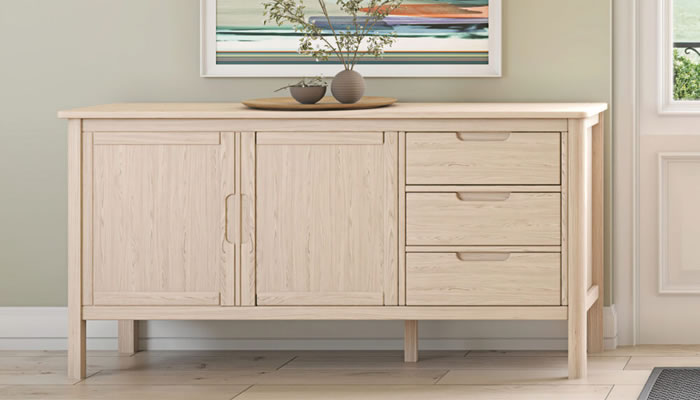 Berwick 2 Door 3 Drawer Sideboard The Signature Collection Berwick 2 Door 3 Drawer Sideboard is elegant and practical with minimal Scandi design. Crafted from a pale oak this sideboard features a spacious large cupboard and 3 Drawers.