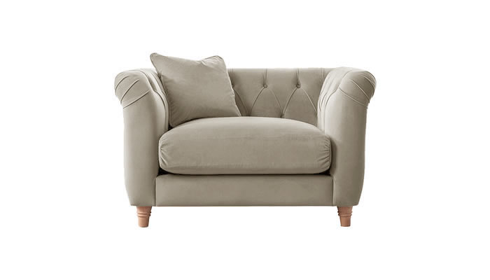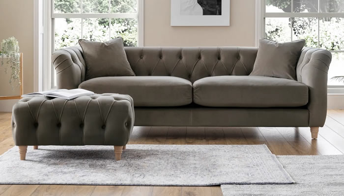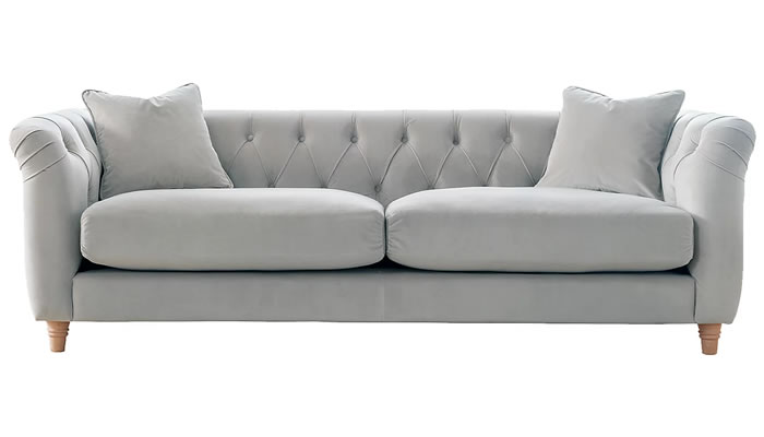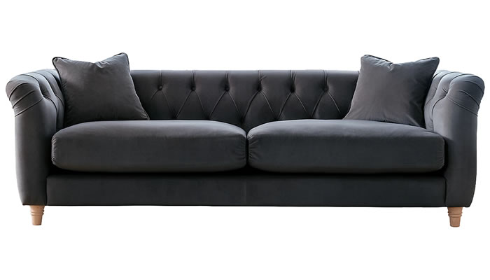 Studio Sits Eloise 3 Seater Sofa This Studio Sits Eloise 3 seater sofa brings classic design and elegance to your living space. Available in five beautiful soft plush velvet colours this range oozes opulence. The buttoned pattern on the back and arms and the natural wooden feet give that distinctive appeal and refined finish.