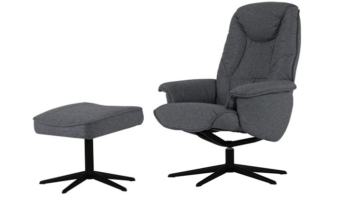 ☆ 2 WEEK DELIVERY ☆ Manual Swiwel chair with adjustable backrest and stool in grey fabric. Eelegant star base in black.